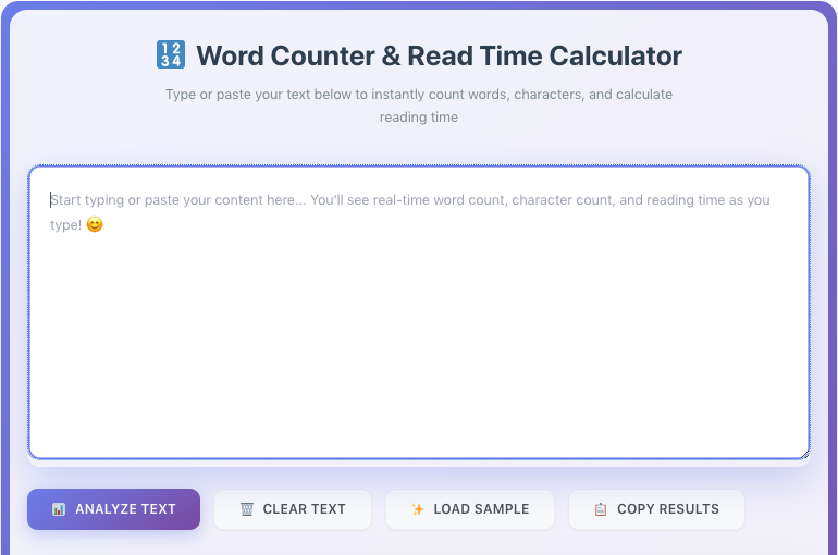 One of the best things about a reliable Word Counter and Read Time Calculator is that it requires no tutorial. Simply paste your text, and the numbers appear instantly β thatβs by design.